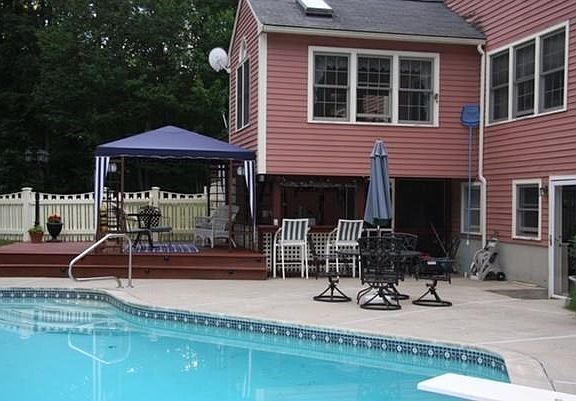 Shelter in and enjoy watching movies in your in home theater or sit pool side. In ground heated pool with cabana bar, outdoor patio plus a 17x14 deck are ready for your summer enjoyment. Lower level completely finished with a state of the art theater room and 500 sf game room with pool table. Country kitchen with breakfast bar opens into the family room. French doors open into the sun room with cathedral ceiling, skylights and access to a 17x15 deck. HW in formal dining room and fireplaced living room. Master bedroom suite features tray ceiling, full bath with soaking tub and separate shower, oversized 9x9 walk in closet and a private home office or sitting room. 3 additional bedrooms with walk in closets, full bath and laundry complete the 2nd floor. One year American Home Shield Warranty. Covid 19 disclosure must be signed. Masks and gloves please.