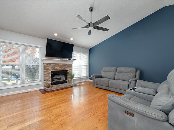 Welcome home to this stunning 3 bed 3 bath home tucked in the heart of Dardenne Prairie! W/ just over 3000sqft of total living area, this sprawling ranch home greets you with a gorgeous front porch and fresh landscaping! As you enter, you are welcomed by your open-concept living room w/ gorgeous hardwood floors, wood-burning fireplace, and site lines into the stunning kitchen! Your dining and kitchen combo will leave you in awe with its SS appliances, custom painted modern dark gray cabinets that scream designer! Off the kitchen is a large main floor laundry/mud room and 2 car garage! Down the hall is your large owners suite with a massive walk in closet, double vanity, and separate tub and shower! Two secondary bedrooms and additional full bath complete the main floor. The basement is finished w/ large living room, workout room, sleeping area, full bath and plenty of storage! With a large level backyard completing this gorgeous home you will not want this to pass you by! Call us now!!