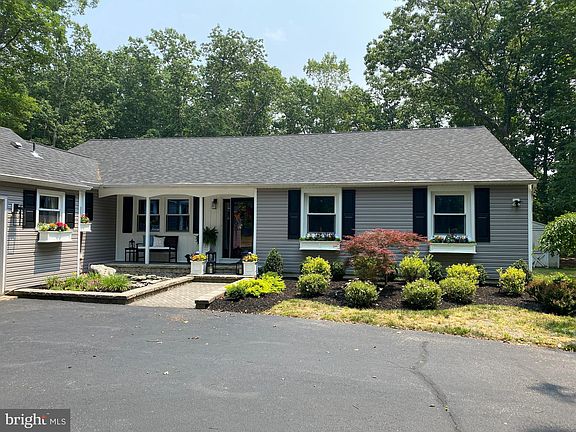 **UNDER CONTRACT** Looking for a quiet neighborhood w/space to entertain? Look no further! This single-story rancher boasts comfort and luxury at every turn. Warm neutral tones complement the interior, creating a cozy ambiance throughout. Beautiful, hardwood floors lead you through a dining room, family room, eat-in kitchen which opens up to an inviting living room with a wood-burning, brick fireplace. The heart of the home is the kitchen featuring stainless steel appliances by LG and Bosch, granite countertops with a built-in electric range, and a charming white farmhouse ceramic sink. The living room continues into an expansive glass sunroom, complete with tile flooring and an indoor hot tub—a perfect retreat year-round. On the other side of the home you'll discover 4 carpeted bedrooms, including a primary bedroom with a private, ensuite bathroom featuring a tile shower with a sliding glass door. There is a full bathroom at the end of the hall for the other 3 bedrooms to utilize. Back through the kitchen is the laundry room, a half bathroom, and access to either the 2 car garage, the side yard, or into the basement. This fully finished basement offers storage and additional space for leisure, featuring a full bar and billiard table, ideal for hosting gatherings. Outside, enjoy the circular paved driveway, paver walkway leading up to the front covered porch that welcomes you home. A large painted deck wraps around the sunroom, overlooking the .69-acre property with an above-ground pool and an invisible dog fence. Recent updates include a new roof (2 yrs), siding (2 yrs), gas water heater, furnace, air conditioning system (3 yrs) and well (6-7 yrs). There was an underground oil tank that the sellers removed in late March. Don't miss out on this rare opportunity to own a meticulously maintained home in a desirable neighborhood in Shamong Township (just a stone's throw away from Medford Township). Schedule your tour today and make this property your new sanctuary!
