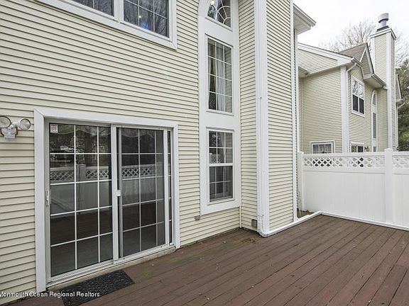 Magnificent colonial style end unit in The Orchards of Holmdel. Open foyer opens to LR & DR which includes custom window treatment. LR has new hardwood floors as well as 2nd floor. DR has beveled mirror wall with bay windows. Kitchen with upgraded s/s appliances, brand new DW & micro, sliders to large private fenced in deck. 2 story family room, gas FP & floor to ceiling custom treatments. Garage has shelving and epoxy flooring. New AC unit and Hot water heater. Close to NY bus stop and train station as well as Garden State Parkway. One small dog can be considered with additional monthly fee