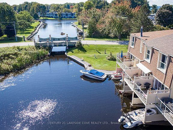 **Harbour Village IV** -Step into a Private Oasis Covering Approximately 1122 Sq ft, Featuring 2 Spacious Bedrooms, Boasting Modern & Smart Updates. The Inviting Living Room Filled with Natural Light a Charming Fireplace, Modern Textured Walls, Desired Details throughout, a Delightful Patio, Walkout Leads to Your Personal BOAT Mooring, Granting Seamless Access to the Pristine Waters of Lake Simcoe. Nestled Against the Picturesque Pike Lagoon, this Home Offers Breathtaking Woodland Views that Enhance your Tranquil Living Experience. Convenience Meets Comfort with a Second-Floor Laundry and a Primary Bedroom Complete with a Generous Walk-In Closet. Just Moments Away, Enjoy a Stunning Private Park-Like Setting that Opens up to a Pristine Sandy Beach Perfect for Swimming, Unforgettable Sunsets, and Fishing Adventures.This Exceptional Location is the Ultimate Year-Round Getaway! Lagoon City Features Modern Waterfront Living, Municipal Services, Fibre Optic's, a Vibrant Community Centre, a Yacht Club, Delightful Restaurants, and a Marina All of this is Conveniently Located Just half an hour South of Orillia and a Mere 15 miles from the Excitement of Casino Rama. Embrace the lifestyle you've always dreamed of~ 'Start Living Lakeside Today!'