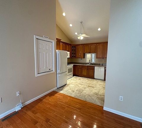 Cozy gas fireplaceOne-story livingBack trex deckSpacious bathroomSliding doorsPlenty of storageCathedral ceilings