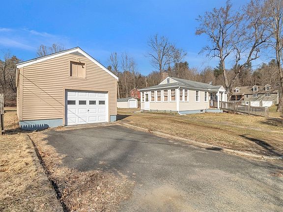 Wonderful move-in ready ranch with hardwood floors, updated kitchen with gas cooking and heated 4 season porch/mudroom. Enjoy the open floor plan including dining room with cozy electric fireplace and living room with an abundance of natural light. Additionally, find 3 good-sized bedrooms with ceiling fans, a full bath and loads of basement space for laundry and storage. Outside there are 2 detached garages with additional workspace and more storage, all situated on a large, nearly half-acre flat lot. Conveniently located near amenities and priced right!