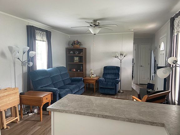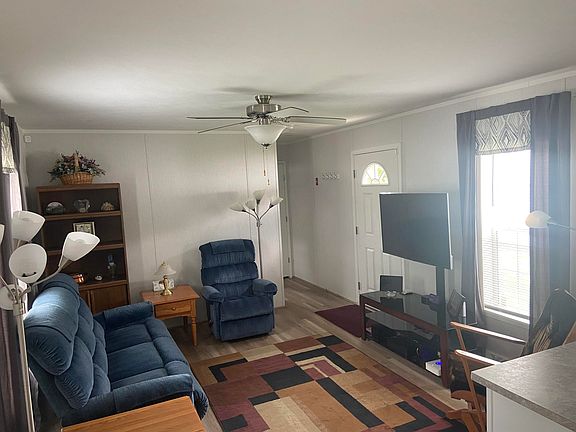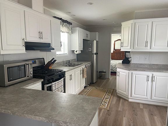 This barely lived in single wide offers affordable living, convenient location, a primary with a full bath and an additional full bath and bedroom. The beautiful white kitchen with SS appliances has an abundance of cabinets and countertop to work on. Move right in! Country Lane Estates rules and regulations apply. All buyers must apply and be approved by the Country Lane Estates park.