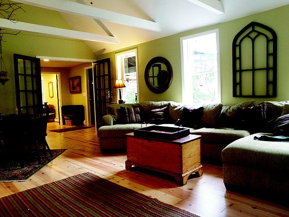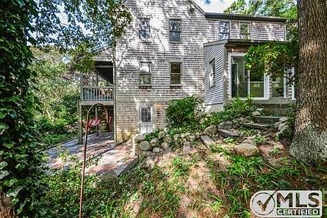 The front porch will welcome you home to serenity. Tucked on cul-de-sac in Great Hills neighborhood and surrounded by mature plantings and separate outdoor spaces, this unique Farm House Colonial has a warm yet updated and contemporary feel. Impressively large rooms create gathering places ~ a fireplaced living room with cathedral beamed ceilings and wood floors ~ an open kitchen featuring granite counter, stainless appliances, Bertazzoni Italian range, wood floors, french doors leading to three season sunroom and brick patio ~ finished lower level family room with access to stone patio. Appealing features include private master bath, wood floors throughout, formal dining room or first floor den, home office space, first floor laundry room, newer furnace, one car garage. Convenient to highway for commuting, to the East Sandwich salt water beaches and Sandwich Village.