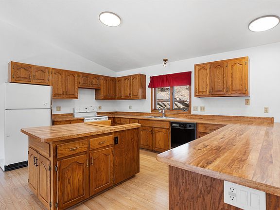 Welcome to this spacious 4-bed, 3-bath home with a 3-car garage, located close to downtown Deadwood. Recently painted, it features breathtaking views, a covered deck, and a lovely concrete patio. The primary bedroom, complete with a master bathroom and walk-in closet, is located on the main level. Enjoy the large kitchen with a large walk-in pantry. Enjoy the open-concept layout and vaulted ceilings. After a long day, relax in the hot tub. The steel roof allows for minimal maintenance. Listed by Jeffery Christians, Real Broker LLC, and co-listed by Beth Staeckeler, RealBroker LLC, 631-902-6095