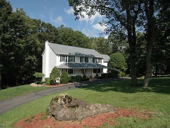 Gracious colonial with 50' front porch & circular driveway boasts almost 3500 sq ft of living space. 4 bedrooms plus office or potential in-law suite. Dramatic 2 story family room w/stone fireplace. Mature trees surround the property creating a very private back yard. Generous room sizes throughout, this home has been substantially updated by the original owners. New roof in 2007, new kitchen and full bath on main floor in 2010. Large kitchen is open to the family room and includes hardwood flooring, s/s appliances and Silestone counters with breakfast bar. Well pump, well tank, water heater, water treatment system all less than 4 years old. 2nd floor furnace replaced in 2017. New deck, new vinyl porch railings. Only 5 minites to I 80 or downtown Hackettstown. Furniture negotiable.
