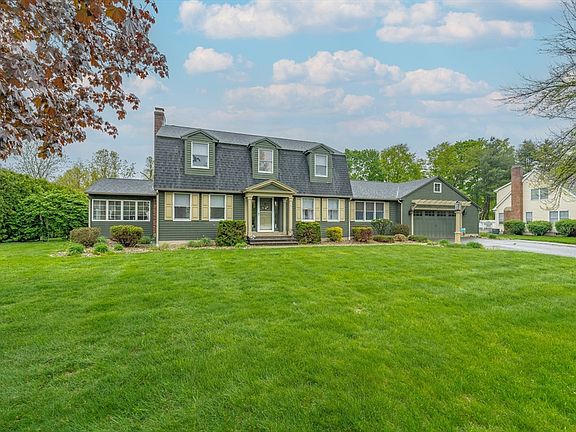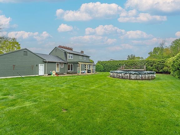 Front foyer with open center staircase. Large living Rm with coffered ceiling’s ,fireplace and wood floors. Sunroom off Liv Rm currently used as office. New 2024 Mini Split offers heat/ Air for year round use. Kitchen offers white cabinets, stainless appliance's gorgeous Granite counters, Dinning area w/sliders to patio covered by pergola. Formal Dining Rm off kitchen. Lrg Family Rm w/wood flrs. 1/2 bath off fam rm. hallway with 1st flr laundry closet. 2 car attached garage. Main suite has walk-in closet and full En Suite bath. 2 more lrg bedrooms w/good closets. 2nd Floor Full bath. 2 finished rooms in basement plus plenty of storage. New roof 2022, New state of the art heating system and water heater 2022. Exterior of the home to be painted before close. May have time to choose your color? Gorgeous private park like yard offers above ground pool w/deck. Patio with gorgeous Pergola covering. Storage shed. Municipal wi-fi.