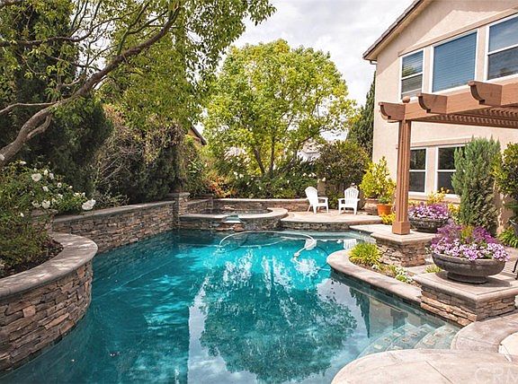 Location! Entertainers delight in gated Coto de Caza! Pool home with quiet cul-de-sac location, serenely private backyard, and wonderful wilderness views! 3,300 sq ft, 5 bedrooms plus added TV room (could be 6th bedroom). Professional landscape design by Landshape, Inc. (Mark Gennaro, Architect) Architectural pool and spa with waterfall feature plus a sunken barbecue area with sink and bar. Covered patio, raised planter areas with faux stone, nine pilasters with concrete flower pots. New custom granite kitchen counters and back splash. New stainless steel Kohler sink and faucet. Brushed stainless steel appliances, including GE Monogram refrigerator and Bosch dishwasher. The lower level features custom crown and base molding, custom framed windows, travertine flooring, gas fireplace, plus upgraded maple mocha railings and cabinets. Main floor bedroom (currently being used as an office) plus bath with shower. Family room with custom built-ins The upper level includes a laundry room, computer/tech alcove, 4 bedrooms, plus added TV room. One bedroom has a private deck. The master suite includes a large, walk-in closet with custom shelving The home also has a central vacuum system and the entire home is pre-wired for sound! This home is a must see!