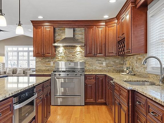 Welcome to 4 Pine Ave in Burlington! A sizable front farmer's porch invites you into this dazzling colonial w/ young 2014 construction. On the main level, a welcoming foyer area leads into a gorgeous chef's kitchen w/ granite island which opens to an impossibly bright and airy family room w/ soaring ceilings. Formal dining room with coffered ceilings, updated half bath, private office, and relaxing living room with gas fireplace finishes off the first floor. Upstairs you’ll find an attractive full bath, four bedrooms including generous primary w/ impressive walk-in closet and striking double-sink private bath, as well as the convenient laundry room. A spacious finished lower level w/ durable laminate flooring lends itself to a variety of layouts and uses. Outside enjoy a morning coffee or evening cocktail on your private custom-built patio overlooking a handsome stone wall. This irresistible home is located on a quiet, tranquil cul-de-sac w/ incredible proximity to 95. Don't miss out!