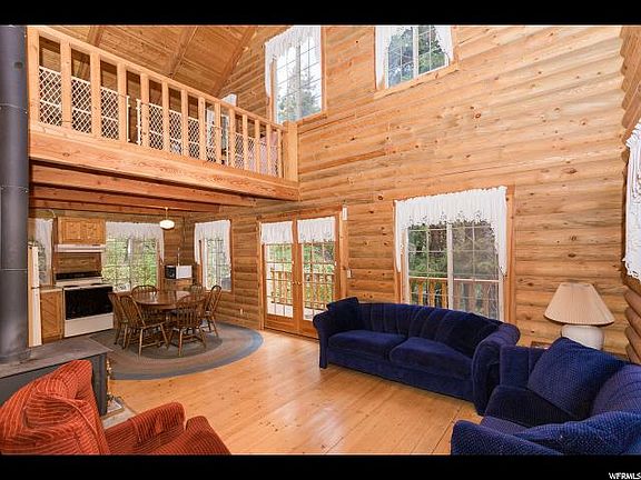 Enjoy a summers day sitting on the 3/4 wrap around porch amongst the tall pines. The peaceful setting offers beautiful mountain views and the sound of the creek running below. Inside, bundle up by the fire to enjoy an autumn day or snowmobile up for a quiet escape into the snow. This cabin getaway comes furnished (excluding a few items) and sits on 1.81 acres (two parcels - A4 & A5) in a private mountain community. It has been well cared for, including updated plumbing. Buyer is advised to verify all information.