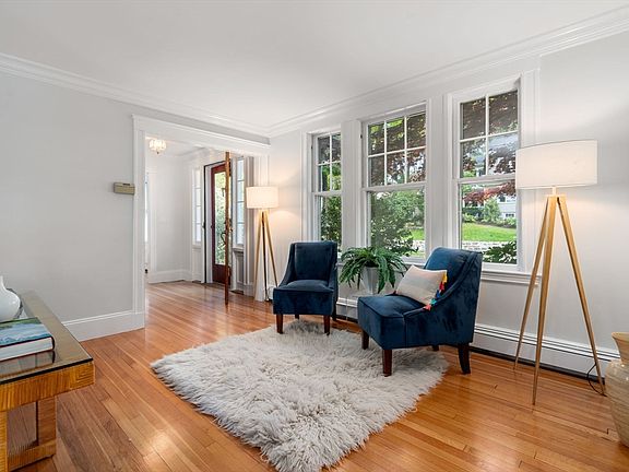 The location you’ve been waiting for! Perfectly situated near Crystal Lake and all the amenities of Newton Center & Highlands villages, including restaurants, shops, the T, Whole Foods, and schools. This sunny, move-in ready Colonial welcomes you home with classic charm & modern luxury. The 1st floor features a gracious living room w/ cozy fireplace & built-ins, sun-drenched family room, & handsome dining room that opens to an eat-in kitchen with new SS appliances & induction range. Upstairs find a serene primary suite boasting a vaulted ceiling, walk-in closet, & stunning bathroom w/ radiant heat, plus 2 more bedrooms & full bath. Finished walk-out lower level provides versatile space, with 2 additional rooms, mudroom, 1/2 bath, plenty of storage, & laundry. Enjoy outdoor living with a large, private screened-in porch, bluestone patio, beautifully landscaped grounds, and trails & parks nearby. Complete with one-car garage & EV charger. This is a special home in a coveted location.