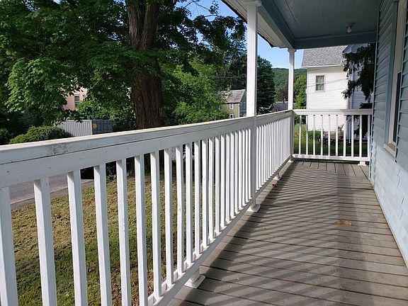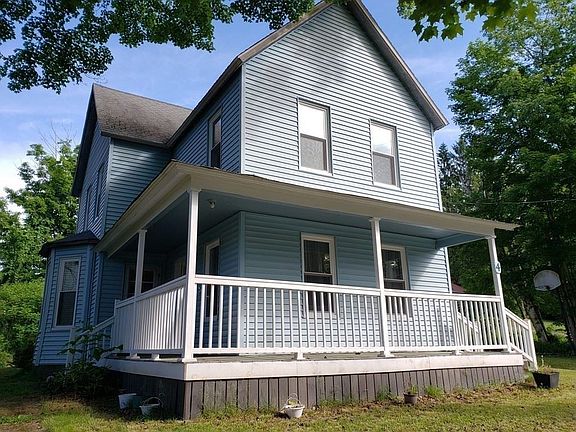 Charming 9 room colonial with wrap around porch and garage, is conveniently located close to all town amenities and recreation. This generously sized, affordably priced home is bright and spacious offering a country kitchen that has newer stainless-steel appliances and a pantry/hutch cabinet with antique glass doorknobs. First floor laundry area and half bath. Mudroom off the garage into the house. Formal dining room has French doors, living room with fireplace. There are 4 bedrooms plus an extra room, great for a home office, or to use as you choose. Full bath on the second floor has a clawfoot tub! Wide pine floors and ceiling fans are all through-out. City water, city sewer, replacement windows. Newer electrical panel, heating system, central AC, upgrades to plumbing and other improvements have been completed, permitted and new CO issued. Own this home for less than renting, add your personal touches and make it your very own. Put this one on your list to see this week!