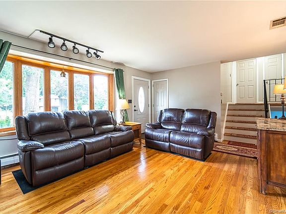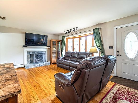 Welcome to 4 Pine Tree Ridge, Meriden. This is a split level home with 4 floors creating space for everyone! The main floor living room has a beautiful fireplace and this space flows seamlessly into a nice sized dining room both with gleaming hardwood floors. The kitchen has a wonderful working layout with granite countertops and stainless steel appliances. The upper floor has 3 spacious bedrooms all with hardwood floors and a full bathroom. The lower level has a finished space that can be used for additional family room space or is perfect for a home office. This level also has another full bathroom. The large two-car garage and backyard can be accessed from this level. The lowest level is all unfinished storage space! The backyard has wonderful outdoor space on a .27 acre corner lot great for entertaining. Central air makes this a perfect home!
