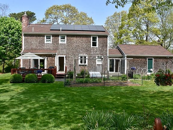 Nestled on 3/4 of an acre on a  picturesque side street, this charming 3 bdrm, 2 1/2 bath Colonial boasts an excellent location; less than 1 mi to both Sagamore Beach and the Cape Cod Canal. Standout features include gardener's dream yard which offers peace and tranquility, and room for a pool. Inside the natural light shines through the windows, highlighting the oak hardwood floors.  Kitchen is well appointed with quartz counters and views/door to backyard deck. Step down to a cozy den complete with gas fireplace. Also on 1st fl dining rm + living rm (or make it an office) Primary has cathedral ceilings, walk in closet and newly updated bath with granite double vanity and marble shower. Partially finished basement for home office/playroom. 2 car garage and breezeway. Anderson tilt in windows. 2017 roof. Home equipped with 2017 Hybrid System 2000 furnace and hot water system and Roth double lined oil tank. Passing Title V. Owned solar panels. Close to beaches, hwy, canal + more.