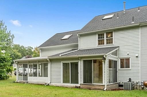 Welcome to Poplar Estates IV located in a quiet cul-de-sac neighborhood in North Chelmsford. FANTASTIC opportunity to own this rare and spacious 4 level Condex style townhouse with an oversized 21x22 two car garage. Well over 2400 square feet of living area featuring 3 bedrooms and 2.5 baths. Entertainment sized 21x24 great room above the garage with vaulted ceiling, skylight and Perfecta Winrich ventless gas stove. The kitchen boasts granite countertops and newer stainless steel LG appliances. Multiple sunrooms with walls of glass overlook the private back yard. Third floor loft with private entrance up for your additional bedroom suite. The basement is also finished for a potential in-home office or playroom and features another full bath with a 2 person hot tub. Recent upgrades include complete interior painting 2021, new water heater, 2021, new furnace 2020, new roof approx 2017 and updated vinyl windows. $150 fee provides equipment for you to do your own landscaping & snow.