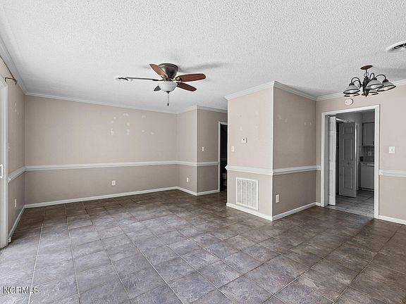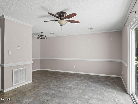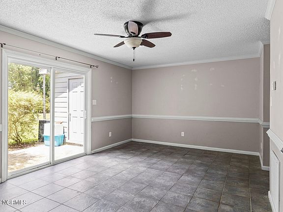 Perfect starter home or investment property. This desirable end unit townhome boasts a patio that opens to a large grassy common area that is bordered by mature trees. A patio closet provides extra outdoor storage. Inside you'll find attractive tile flooring throughout the first floor. The kitchen is located immediately to your left as you enter and flows through to the dining area. A spacious laundry closet is located in the kitchen and provides extra storage space. The entryway leads past the stairs to a convenient half bath and then on to the open living and dining area. Sliding glass doors provide plenty of natural light and open up to the back patio. Upstairs you'll find the master suite featuring a walk-in closet with built-in shelving and an attached bath. Two additional bedrooms and another full bath provide space for family or guests or use them as an office or workout room! Conveniently located near historic downtown Swansboro, Emerald Isle and other area beaches, as well as Camp Lejeune and other bases.