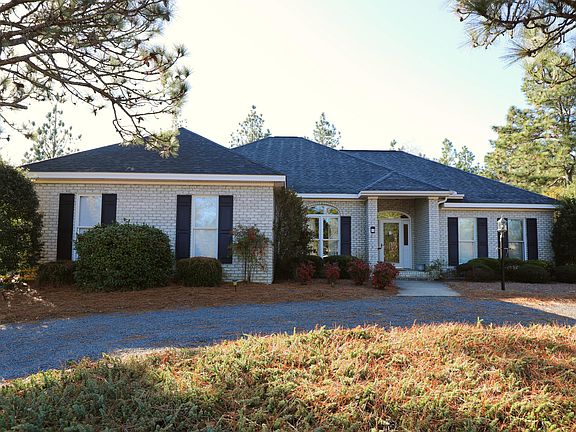 This Pinehurst No 6 home sits on a quiet cul-de-sac street and corner lot and offers over 2200 square feet all on one level with only one or two steps to enter the home. Features include a split bedroom floor plan, spacious living room and den with fireplace with built-in bookshelves, beautiful hardwood and carpeted floors, 9 ft and 10 ft ceilings (and no popcorn) with crown moldings in most rooms, fully equipped kitchen and laundry room. The kitchen has an informal eat-in casual area in addition to a bar sitting area plus a formal dining room and great storage space with roll out shelves in the pantry. And just off the kitchen is a seasonal porch filled with light and is the place to enjoy morning coffee.Off the porch is a private patio for grilling and enjoying the outdoors. The garage is around the corner from the front of the house with a private driveway and easy to enter the house and unload groceries. A semi-circular front of the house driveway provides easy and more formal entrance for guests. A full Pinehurst membership is available with buyer paying all transfer fees.