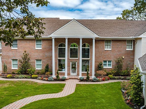Lakefront living and cul-de-sac privacy define this expansive Linwood residence, offering over 6,700 square feet of thoughtfully designed space with six bedrooms and five bathrooms. Originally a rancher, the home underwent a major renovation and expansion to create a flexible layout with multiple living and dining areas. The two-story foyer, highlighted by a sweeping staircase and chandelier, opens to a series of inviting rooms. The chef’s kitchen showcases cherry cabinetry, a center island with a second sink, multi-level granite counters with bar seating, and stainless steel appliances including double ovens and a gas range. Just off the kitchen, the dining and living areas share a gas fireplace-an ideal setting for entertaining or spending time with family and guests. A laundry room and full bath are conveniently located nearby. Beyond the main living areas, multiple rooms offer flexible use, including spaces currently serving as a movie theater, workout room, office, and spare bedrooms. Upstairs, a secondary living area features a fireplace and large windows overlooking the lake. The primary suite offers a fireplace, an oversized walk-in closet with a built-in vanity, an attached bathroom with a large walk-in shower and jetted tub, and access to the back deck. Also on this level are two additional bedrooms, a full bathroom, and a custom cherry wood bar. Additional features include travertine tile and hardwood flooring, oversized walk-in closets, recessed lighting, laundry on both levels, and multi-zone HVAC. The fenced-in backyard provides a private outdoor retreat with direct lakefront views, a paver patio, and ample space for relaxing or entertaining. The two-car garage includes an additional storage room above, accessible from the second floor of the home. Situated in a beautiful neighborhood, this lakefront property is just minutes from the beaches of Ocean City, Margate, and Longport, as well as nearby parks, dining, and shopping. With a generous layout, scenic views, and desirable location, this home truly stands out.