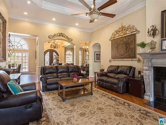Simply breathless, charm & beauty awaits your viewing on this lovely custom built home that offers something for everyone. It features 4 or 5 bedrooms (3 on main level), 3.5 baths, living room, dining room, family room w/fireplalce/logs, kitchen w/breakfast area/bar/island, bonus room, laundry room, and a 4 car garage. Amenities are endless and include castle entry doors, hardwood floors, travertine, trey ceilings w/rope lighting, barrel ceiling, island, ceramic tile, security & sprinkler system, granite counter tops, vessel sinks, walk-in closets, 3 bay windows, stamped concrete, lamp post, water fountain, circular driveway, and much more. Family entertaining is a must with a hot tub that overflows into a salt water pool. A large covered porch and patio awaits your viewing. Too many amenities to mention so call today for your private tour of this rare jewel located in Edgefield Farms. A place anyone can call home.