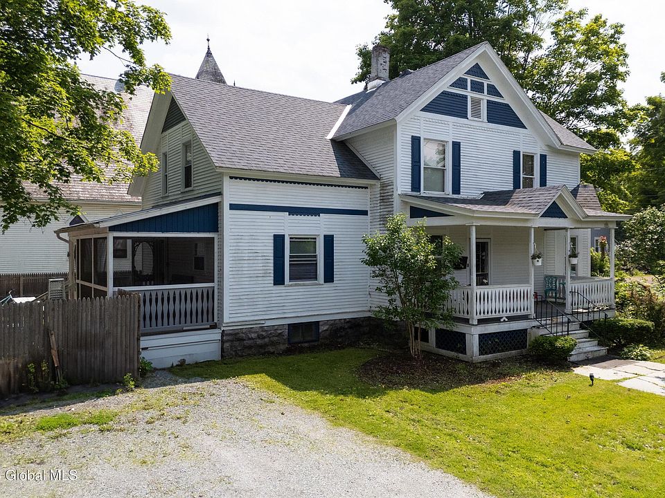 Incredible value for the price! This charming 4 bedroom home offers over 2,100 sq ft of sun filled living space with unique and timeless design details throughout. Enjoy a formal dining room, spacious eat in kitchen, walk up attic, and full basement. Natural light pours into each room, highlighting the home's character and charm. Relax on the covered front porch or back deck, with off street parking included. Whether you're settling in or investing, this Granville gem offers space, functionality, and unmatched potential, just minutes from schools and village amenities.
