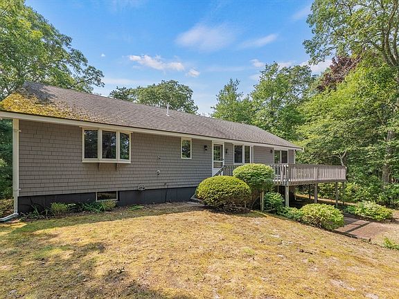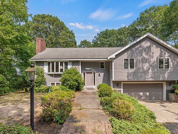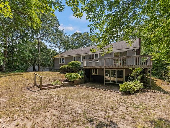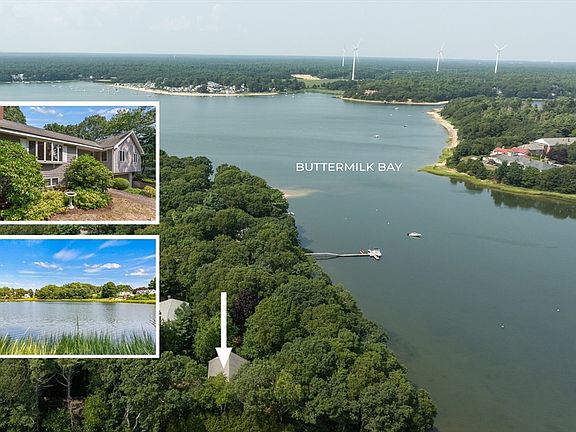 Waterfront property with approximately 100 feet of frontage on Buttermilk Bay with private stairs to the water's edge for convenient access to the bay and beyond. This 2,168 square foot house is situated on a .65-acre tranquil and peaceful setting lot. Inside, the home boasts hardwood flooring throughout most rooms and a vaulted-ceiling living room with floor-to-ceiling brick fireplace. The open but defined layout creates an airy atmosphere. The residence offers three bedrooms and two and a half bathrooms, providing ample living space. The primary bedroom features an en-suite bathroom. Spacious deck off of the dining room. The walk-out lower level has perfect flex space ~ family room , laundry area and half bath, Central Air and two car garage. Residents also have the benefit of a private beach association, providing additional access along the shoreline. Title V approved - perfect year-round property or vacation property.