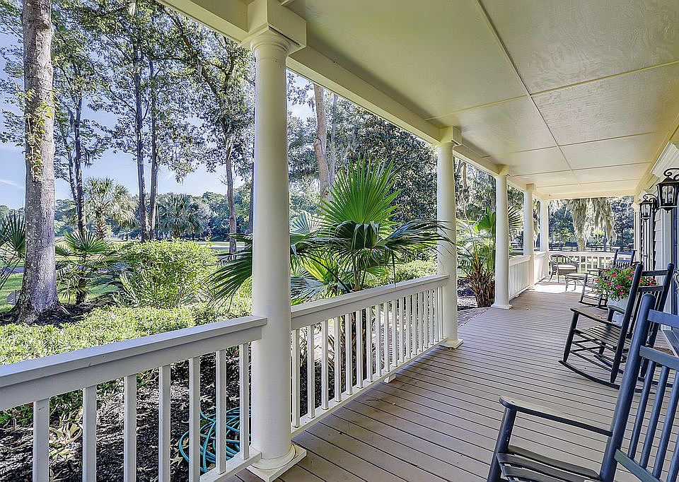 Lowcountry estate located in gated community features golf, deep water access, pools, tennis courts/center, pickles ball courts, clubhouse, polo & equestrian center. Modern farmhouse style 2 story home features 10' ceilings, open floor plan, remodeled kitchen, Viking appliances, white millwork on some walls & hardwood floors. Master suite opens w/quadruple glass doors to screen porch, marble bath, soaker tub, separate walk-in shower & spacious closet. Completely fenced, horses allowed. 3-stall barn, tack rm, wash stall & paddocks leading to pasture irrigated by inground well. Front porch faces polo field, back porch/deck views pond& pastures.