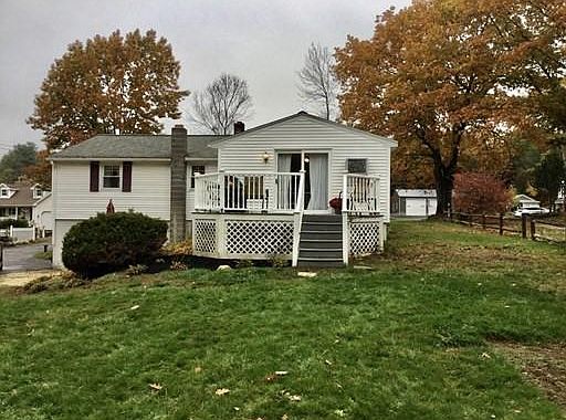 Country Road...take me home.... to this adorable 3 bedroom vinyl sided ranch style home. A wonderful bright open floor plan features formal living room with bay window and hardwood floors. The open dining room/kitchen has generous amounts of oak cabinets and counter space complete with breakfast bar, corner sink, hardwoods and decorative molding. Cozy family room addition off w/laminate flooring, wall A/C unit and sliders to deck overlooking a great flat backyard with plenty of gardening space, family fires and cookouts finished with a wonderful backdrop of trees and woods. Hallway with decorative molding w/full bath and 3 bedrooms off. Lower level is a bonus as it offers more living space with two additional finished rooms one currently being used as in-home office/playroom, other being used as in-house gym, complete with sliders and door to the outside. Separate laundry room and storage area with plenty of shelving. Plenty of off street parking and you are HOME!