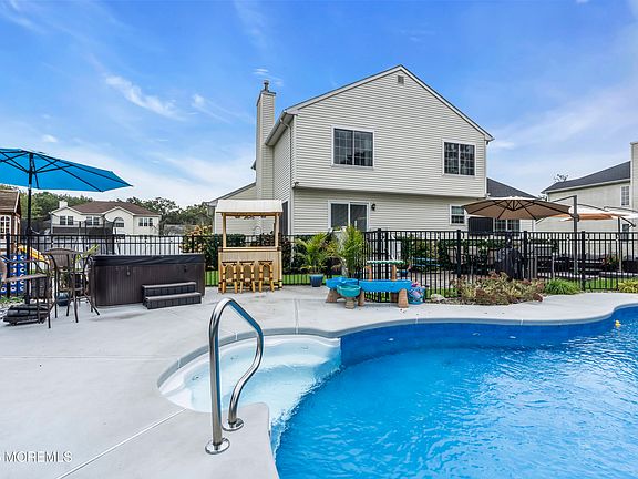 Opportunity Knocks! Immaculate 3 Bedroom, 2.5 Bath Colonial w/ SALT WATER POOL & FULL FINISHED BASEMENT in highly sought Radiance at Howell development. Features include Hardwood floors, Recessed Lighting, and Decorative moldings throughout. The upgraded Kitchen is a showstopper, featuring Quartz countertops, Breakfast Bar, top-tier Appliances, and popular white 'soft-close' Cabinetry — perfect for today's modern lifestyle. Living Room / Dining Room combo w/ Cathedral Ceiling. Step outside & enjoy your very own backyard oasis with a Saltwater vinyl Pool surrounded by a paver patio — the ultimate space for summer fun! Three generous sized bedrooms on the second floor including Primary bedroom suite w/ walk in closet. 2nd floor laundry & Full Finished Basement w/ Rec Room & Media Area. The perfect Howell home for you, the Next Owner