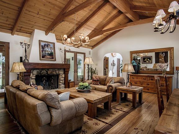 This very special property will capture your imagination. Four beds and two and a half baths surround a courtyard complete with outdoor fireplace and unique Garden House. Mature plantings, orchard, and glorious views. Spacious rooms, radiant heat, inviting kitchen shares a sitting room. Great room has soaring beamed ceilings.