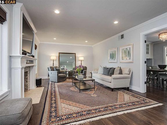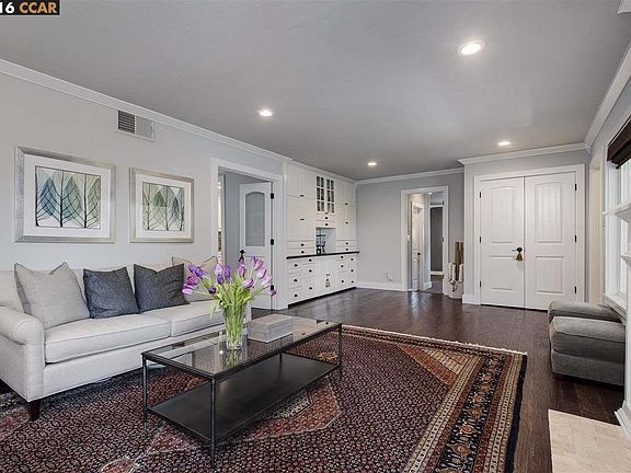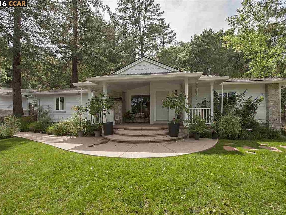Nestled on approximately .5 acres within Lafayette’s exclusive Upper Happy Valley, this charming, home is embraced by mature trees, verdant green hills, and spectacular landscaping that extends from the home to create inviting areas for entertaining and recreation. A serene walkway meanders its way from the charming gate and arbor to the quaint front porch of the Craftsman-influenced single-story home framed by colorful, blooming foliage. Both the home and guest house are remodeled – the home featuring 3 bedrooms and 2 baths, and the guest house offering a spacious living area that includes a kitchen, full bath, separate laundry facilities – ideal for an in-law or au pair. Upon entering, stunning hand-scraped mahogany hardwood floors span the great room with wrapped by crown molding and featuring custom millwork, including Shaker style built-in white cabinetry and storage drawers. The home’s open floor plan leads to the dining room with custom built-in cabinetry and a remodeled kitchen with granite counters complemented by stacked tile backsplashes and white cabinetry. A spacious recreation room/office adjoins, filled by natural light from skylights and the walls of glass that offer views of the beautiful backyard. The master bedroom features an exquisitely remodeled master bath with white Shaker style dual sink vanity and a stunning, open-design, and intricately tiled spa shower with dual heads. Two spacious secondary bedrooms and a remodeled full bath complete the living quarters. Outdoors… beautiful landscaping features numerous areas for outdoor entertaining on patios, as well as recreation on the large, level lawn area. Brightly colored gardens and mature trees encircle the yard for aesthetics and privacy. A pathway leads from the main home to the separate guest house with its spacious suite that includes all of the amenities necessary to be a separate living unit. Centrally located with one of the most coveted locations and finest schools in Lafayette, you’ll enjoy the proximity to downtown shopping and restaurants; the abundant recreational opportunities at the Lafayette Reservoir; as well as a convenient commute to San Francisco. City close, yet worlds away, 4 Rancho Diablo Road is a rare treasure.
