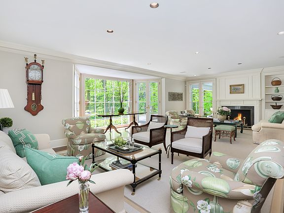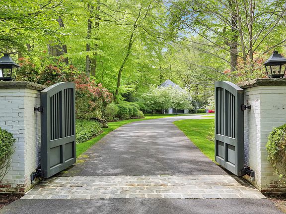 Designed by noted architect, Carl Jensen, this elegant 6 bedroom, 4 bath, French Normandy home sits on 2.6 park like acres located on a private cul-de-sac minutes from town. The meticulously updated gourmet kitchen features a custom banquette and Quartz covered center island. French doors from all principal rooms lead to a large flagstone terrace surrounded by exquisite gardens and mature landscaping. Custom moldings, beautiful hard wood flooring, sunny exposures and built ins throughout. An added bonus is the free standing, wood panelled, oversized one car garage with brick flooring, wine cellar and professional grade greenhouse. Attached three car garage.
