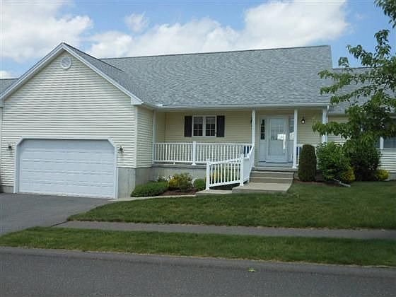 VERY WELL MAINTAINED 55+ Condo end unit. Spacious and open floor plan. Cathedral ceilings with sky lights and recessed lights.Dual sliding glass doors off LR to oversize deck. Beautiful gas fireplace. Master bedroom has oak flooring, walk-in closet and pvt. bath. Guest room or office on the other end of the condo. First floor stackable washer and dryer. C/Air, Central Vac.and Security System are a few amenities Columbia Gas Company will be installing gas lines.Buyer should verify availability.