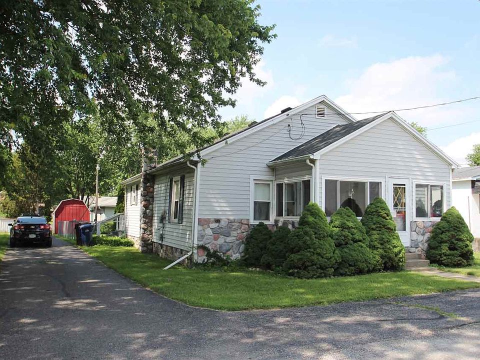 Nice updated 2 bedroom 1 bath ranch style home with around 1208 sq ft on 2 lots. Updated vinyl siding, shingle roof, vinyl thermal pane windows and interior. Nice large kitchen with lots of oak kitchen cabinets. Large updated bathroom. Formal dining area. 8' x 16' enclosed front sunporch. Large rear deck. 25.5' x 35.5' detached garage with an older gas furnace. Fenced rear yard. Asphalt drive. Gas range, dishwasher, refrigerator, washer & dryer can all remain. Water softener is a rental.