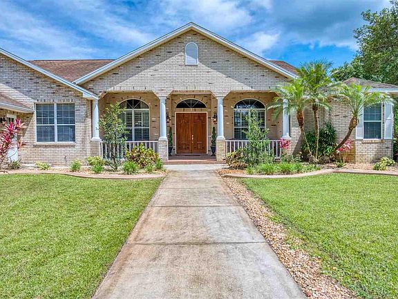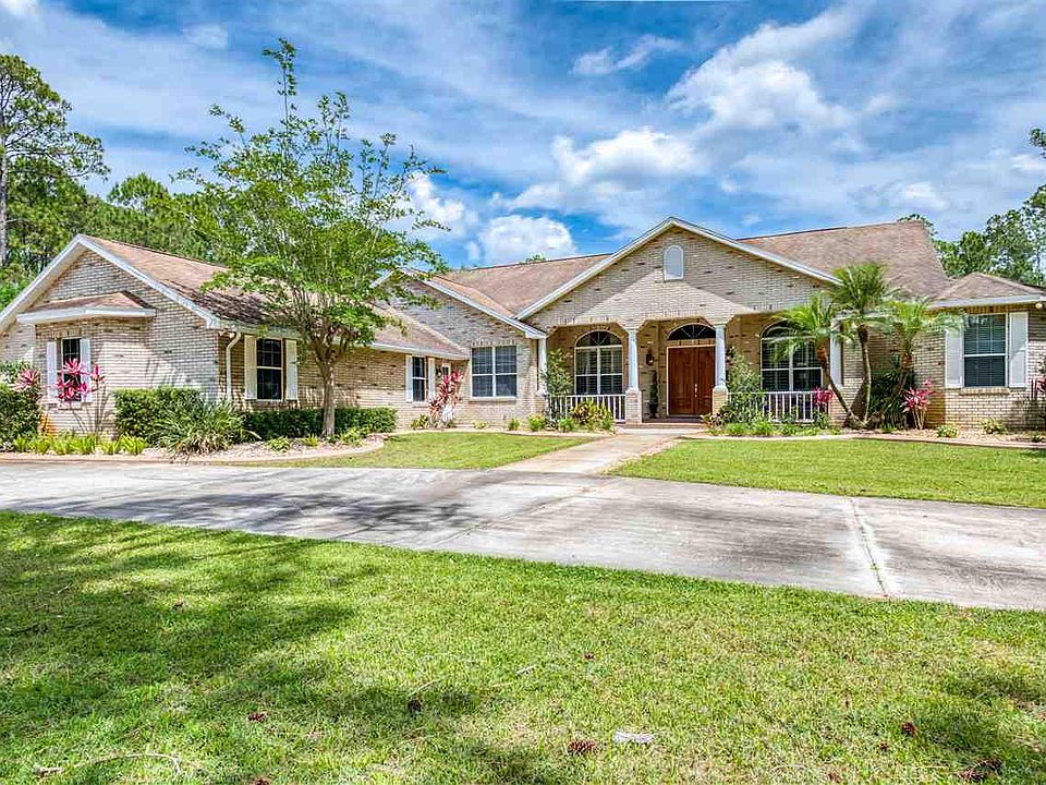 This remarkable 5BR/5 BA, custom home on 5 serene acres is situated in a gated equestrian community, just minutes to I-95 and the shops and eateries in Ormond Beach, but with lower, Flagler County taxes. Constructed by a local contractor as his personal homestead, this concrete block residence boasts over 5000 square feet of well-designed living space to accommodate all your familys needs and more! A generous circular drive graces the front of the estate allowing ample parking for guests as well as room for your RV, boat, and toys. Passing through the impressive mahogany front doors you are greeted by a grand reception area with plenty of natural light and views to the sprawling property beyond. Youll be impressed by the numerous architectural features which abound throughout the home including volume ceilings with custom crown molding, custom trim work around the windows, rounded edge corners, and unique niches and transoms. With generous use of tile and hardwood floors throughout, a stone wood-burning fireplace in the great room, this home creates an atmosphere of warmth while allowing everyone personal space and privacy. Designed to entertain, this home features a spacious game room with French doors leading onto the expansive screened and covered lanai surrounding the free form pool. Beyond the game room youll find a home theater with 103 viewing screen, HD projector and built-in surround sound with theater seating. As an added bonus, on the far east wing of the home is a guest/in-law suite with a sauna, a full bath and its own private entrance. Located for privacy, the west wing of the home encompasses the executive office and the oversized master suite with a cozy reading nook, two impressive walk-in closets with built-ins and a luxurious spa bath with jacuzzi tub and walk-in shower. On the east wing of the home are 3 additional bedrooms, all with walk-in closets and en suite baths, as well as a computer area with built-in cabinetry and desk that could be used as a second office or kids study area. Add to all this, an oversized 3 car garage, utility shed and childrens playhouse you can have all the space youve been yearning for! Eagle Rock offers a gated entry, clubhouse with pool, equestrian riding arena, horse trails and fishing pond all for a low HOA fee of just $730/year.