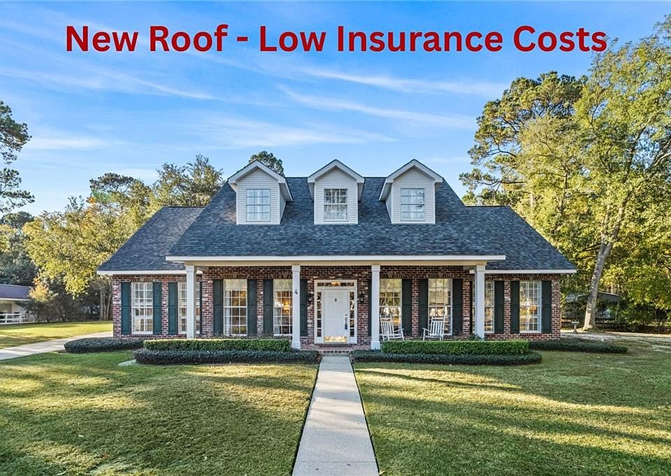 This stunning 4-bedroom, 3.5-bath home is tucked away on a 1.42-acre lot and backs up to over 24 acres of serene greenspace, offering exceptional privacy. You’re welcomed by a beautifully landscaped yard and charming brick front porch—great for relaxing and enjoying the peaceful surroundings. Upon entry, a formal dining room sits to the left, while a formal living room or office with a wall of custom built-ins is located to the right. The spacious living room features tall ceilings, a wood-burning fireplace with built-ins on each side, and beautiful wood flooring installed in 2021. The open kitchen flows seamlessly into the breakfast area and includes custom Roman shades, stainless steel range located in the island, which offers additional countertop seating, and under-cabinet lighting. The wood floors continue into the first-floor primary suite, which offers two separate closets and an en-suite bathroom. The primary bathroom boasts a walk-in shower with multiple shower heads, a separate soaking Jacuzzi tub, and heated floors. Upstairs, you’ll find two additional bedrooms and a full bathroom. Off the living room, patio doors lead to a sunroom that opens to a covered patio—ideal for entertaining or unwinding. The beautifully landscaped backyard also features an in-ground pool, creating your own private oasis. Additional features include a piling foundation with post-tension cable slab, new roof (June 2025), new downstairs A/C (2021), and a new sewerage treatment plant (2025). The property has a transferable flood insurance policy (not required) and a transferable termite contract with insurance coverage. Located in the desirable Flood Zone X on a quiet dead end street, you will experience a true country setting while still being in the heart of Mandeville. This home is truly a one of a kind opportunity, call to book a private showing today!