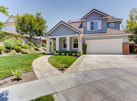 POOL SIZE LOT WITH CASITA! Private and spacious casita home that is rarely on the market and situated in the highly desirable Reston neighborhood of Ladera Ranch. Sprawling almost 2900 sq ft (N.T.) the property showcases 4 bedrooms + a separate casita with bath, 3 car garage, a den/playroom/office, and is situated on an oversized lot at the end of a cul de sac. Formal dining and living room with crown moldings greet you upon entry. The home has been completely repiped and features solar panels for conserving energy. Your kitchen is designed with plenty of counter space and displays white cabinetry, granite counters, stainless appliances, an island for food preparation, and looks on to the den and family rooms. The coffered ceilings and moldings in the family room have a luxurious appearance. The den/playroom is easily converted into an office or 6th bedroom. Hard to find large backyard is private with both hardscape and grass area for children to play. The detached casita has a private entrance and full bathroom with shower. Upstairs you will find 3 guest bedrooms with plenty of natural light, as well as a spacious master bedroom with updated master bath, his and her closets, and dual vanity sinks. A tech center for homework or studying is located in the upstairs hallway. This property is within walking distance to town center, shopping, award-winning schools, and all Ladera Ranch community events. Great curb appeal and premium location.