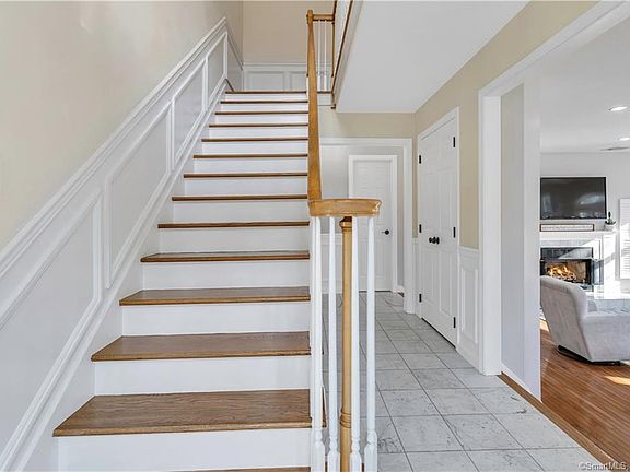 MOVE-IN READY custom colonial with a contemporary flair! The marble tiled front entry foyer leads to a large living room featuring high ceilings, hardwood floors, plantation shutters, recessed lights and a cozy gas-operated fireplace... sure to be a favorite gathering spot for friends and family. Walls of glass allows for natural light to bathe interior spaces. An open floor plan with a remodeled eat-in kitchen boasting granite counters, subway tile back splash, center island, built-ins and high end appliances flows easily to the dining room. A powder room and laundry room are also on this level. All 3 bedrooms are found on the second floor. The master bedroom suite offers a loft area, walk-in closet and a luxuriously remodeled bath creating a relaxing retreat. The additional two bedrooms have walk-in closets and one functions as an en-suite with access to the second full bath. The lower level rec room provides additional living space and offers a walk-out and access to the mudroom and 2-car garage. Multiple sliders open to a wraparound Trex deck with access to the patio and hot tub... easy entertaining, indoor and out. Part of the Richborough Association, this desirable cul-de-sac neighborhood offers homeowners access to a tennis court and a large recreational pond. Convenient location, only minutes to major routes and highway, center of town, restaurants, shopping, beaches and commuter rail. Equidistant from N.Y.C. and Boston. Come see! Hardwood floors throughout the main and second levels. New oil burner installed 2016. Additional amenities include a security system and irrigation system. Lower level mudroom w/built-ins. Shelving in garage conveys. Rose Ciardiello, listing agent, to schedule a showing 203.314.6269
