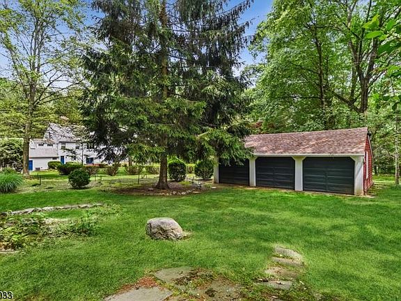 Welcome to this lovingly-maintained classic colonial set on 2.2 acres located within a cul-de-sac. Enter into the grand foyer & enjoy high ceilings, hardwood flooring, security system, central vacuum & many other charming features. This home has the perfect entertaining flow with over-sized rooms & 3 fireplaces. There are French doors leading to stone patios from most rooms. The upstairs consists of 5 bedrooms + a den & 5 full baths. This home has a 3 car attached garage along with a 3car detached garage that has a back entrance from Chestnut Ridge Rd. There is a large finished basement with 9 foot ceilings inclusive of a game room, office, wine cellar, powder room & unfinished storage area. The private yard has a lovely heated in-ground pool. This is a very special home in the coveted Chestnut Ridge section of Saddle River. Low taxes & serenity awaits you!