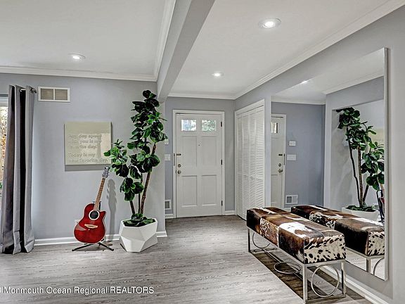 Spectacular 4 bedroom 4 bathroom updated RANCH home on a premium cul-de-sac location that is truly too special to miss. The perfect blend of peace and privacy with chic sophistication. This thoughtfully designed home is truly a tranquil retreat. Generous windows and skylights allow natural light to fill the open concept living space and provide beautiful views from every room. Relaxing primary bedroom suite offers a stylish full bath and large organized walk-in closet. Two more bedrooms, one with en-suite bathroom, and two updated bathrooms complete the main floor. This home offers (approximately) 3000+ sq ft of living space with the walkout basement that includes a gym, bedroom, full bath and den. Relax and enjoy nature on your private patio with retractable awning. Never go without power with the whole house generator. Close proximity to BellWorks & county parks. Easy access to shopping, GSP and NYC transportation