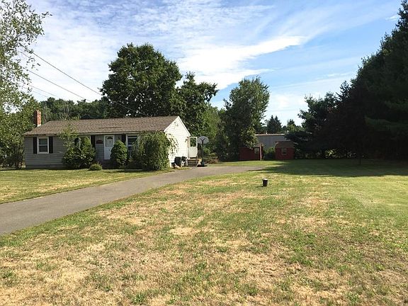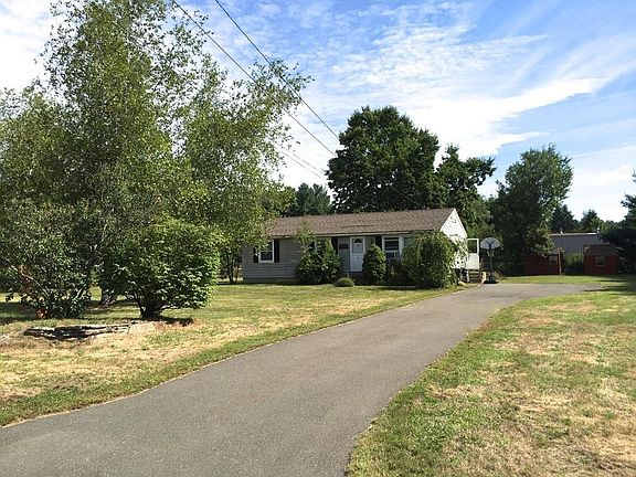 1988 Ranch Home has just under One Acre of land all on a level lot - flat backyard with 2 Sheds that will remain. 3BRs all offer Hardwood Flooring. Nicely kept, the Tiled Eat in Kitchen is vast and the wall is opens up to the Carpeted Living Room - over 1000 square feet of living on one floor. Appliances will remain. Full Bathroom located just down the hall is central to the 3-Bedrooms and is nicely tiled. Basement is partially finished w utility room separate and pellet stove area as well. Remember this home is being sold As Is. The roof is approx 10yrs old. House has Electric Heat + buyer can see the possibility of pellet stove, 200AMP electrical box,Vinyl windows and this home once had solar panels - a great idea for the new owner possibly.