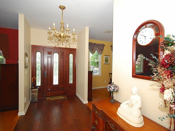 Nestled on a picturesque wooded lot this pristine colonial features a gourmet kitchen, french sliders that open to a park like back yard and inground pool. Master bath with numerous amenities including heated tumbled marble floors, open shower and jetted tub. The walk out lower level is complete with hardwood floors, summer kitchen and full bath. Numerous upgrades include sprinkler system, surround sound, pool heater, fenced in yard and fenced in pool.This house was made for entertaining. First and second level 2472 sq. ft. lower level 432 sq. ft.