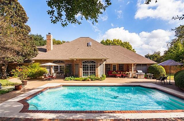Exquisite and beautifully kept Tom Pitt 1-story w/pool on nearly 1/2 acre, cul-de-sac! 1 owner, crown molding, custom paint, updated lighting, Travertine, skylights, 4 beds/3 baths--1 Jack&Jill. Gorgeous dining, living, office & family room, open to chef's kitchen w/hi-end granite, tile back-splash, island w/gas cook-top & painted cabinets! Huge master is set apart w/flex space, coffered ceiling, plantation shutters, granite, 2 shower heads in shower & garden tub. Amazing pool, patio & landscaping!!