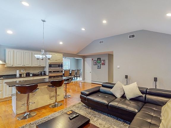 Beautifully maintained single-family home on a large lot, perfect for families, entertaining, and commuters! Modern open floor plan featuring a well-designed kitchen with granite countertops, island, and stainless appliances by Viking. Immaculate hardwood floors throughout, 4 bedrooms, 2 full bathrooms, fireplace, central air, separate laundry room, and a spacious finished lower level. Oversized deck leads down to a fabulous patio with an extensive cooking and grill station and an enormous level back yard. Attached one car garage with an electric car charging station. Convenient location with easy access to Rt 3, Rt 128, and Middlesex Turnpike.