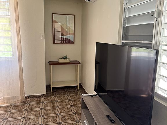 Spacious 3 bedroom 1 bath. Furnished bedrooms, living rooms and kitchen. New appliances and air conditioning in every room. WAsher and dryer. Back up water cistern. Includes wifi, pool and landscaping services. Pool and outdoor entertaining area surrounded by flourishing gingers and pana. Located on a quiet street just moments from both Aguada and Rincon town. Owner pays for wifi, pool service and lawn care. First, last and deposit is due upon signing of lease. This is a no smoking space.