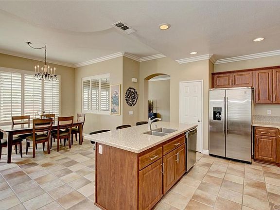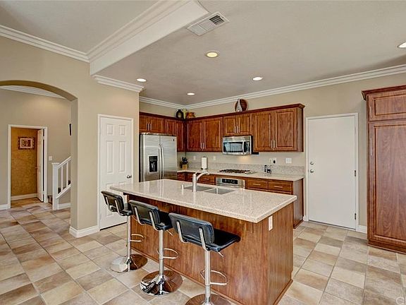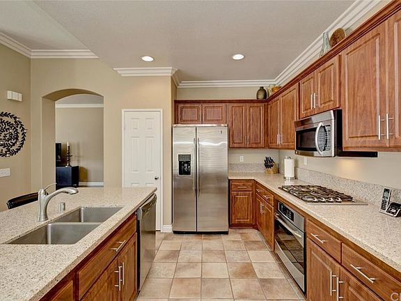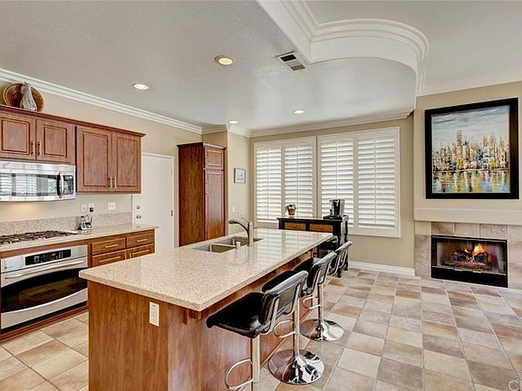 This gorgeous, detached home has upgrades throughout, a large wrap-around yard with a hot tub, and an open, light-filled floor plan. The beautiful kitchen is upgraded with new cupboards, stainless steel appliances, quartz counters and a center island. The main floor of this home has sparkling wood laminate flooring and ceramic tile floors, a tile-faced gas fireplace, and custom French sliders. Additional upgrades include base boards, crown molding, plantation shutters, recessed lighting and a built-in dining hutch. Upstairs, the roomy master bedroom has dual closets with custom built-ins, and opens to a spa-like bathroom with a separate soaking tub, a shower with a glass enclosure, and beautiful custom tile work. The two additional bedrooms share a bathroom that has dual sinks, Travertine floors, and a separate bathtub/shower combination. The open loft is currently configured as an office, but this room can be closed off to make a 4th bedroom. One of the larger lots in this community, the backyard is quiet and private, with plenty of room for backyard entertaining. This home is walking distance to the local elementary, and just a few minutes' drive to shopping, theaters and the toll road.