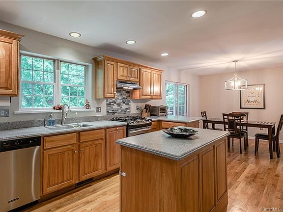 Easy living awaits in the 4 bedroom 2 full, 2 half bath colonial home perfectly situated within a cul-de-sac neighborhood close to town, schools and shopping. Upon entry one immediately notices the freshly refinished floors and an abundance of natural light. The kitchen boasts a large center island, lots of cabinet space, gas range and stainless steel appliances. Flowing effortlessly to the large family room with soaring ceiling and fireplace - this home is perfect for entertaining. The formal yet relaxed dining and living rooms add even more floor plan flexibility. Upstairs we find a spacious and well-appointed master suite with walk-in closet and a light and bright full bathroom with spa tub and shower. Three other generously sized bedrooms and share another well cared for full bathroom. The full and finished walkout lower level with half bath is a great play room, den or a multitude of other uses. The large rear deck looks out over the level and private backyard. A wonderful opportunity awaits!