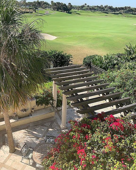Golf course frontage with ocean view over 18th hole. Spectacular sunrises, 270 degree view, over ocean and golf course. South facing pool, deck and garden. Classic pergola with bougainvillea and bocce court. 2 living areas, Ground floor bar area for guest and poolside entertainment. Ground floor en guest suite with ride-in shower. 2nd floor Master en-suite facing the golf course and ocean view, with steam shower and jacuzzi tub, his and her dressing. spectacular dining room with antique library. Major renovations and updates 2006 and 2019.