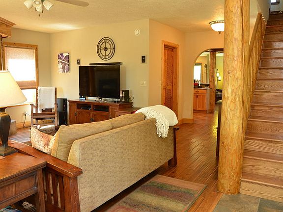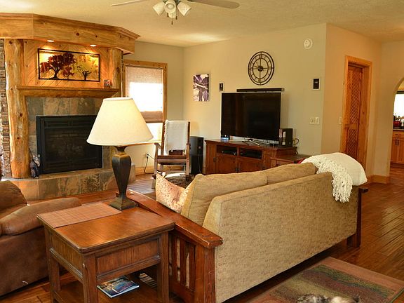 Don't miss this property! Beautiful home with lots of room for everyone and everything. RV parking and horses allowed. This home is full of custom, high end features such as exposed wooden beams in kitchen, stacked stone/slate tile fireplaces, 3/4'' Oak hardwood flooring, custom kitchen cabinets and much more! Two master suites - one on the first floor and one on the second floor. Escape to the second floor master suite with an attached study and sunroom. The other bedrooms are plenty big. There are two separate living areas, each with a fireplace. The detached garage offers a workshop space and additional loft area to lounge. Relax outside in the beautiful partial irrigated yard (per seller). Don't wait! Schedule your showing today!