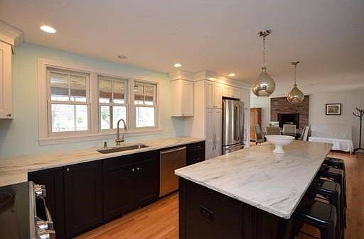 - Kit Dscrp: Flooring - Hardwood, Countertops - Stone/Granite/Solid, Cabinets - Upgraded, Kitchen Island, Stainless Steel Appliances, Open Floor Plan, Recessed Lighting, Countertops - Upgraded, Remodeled